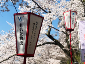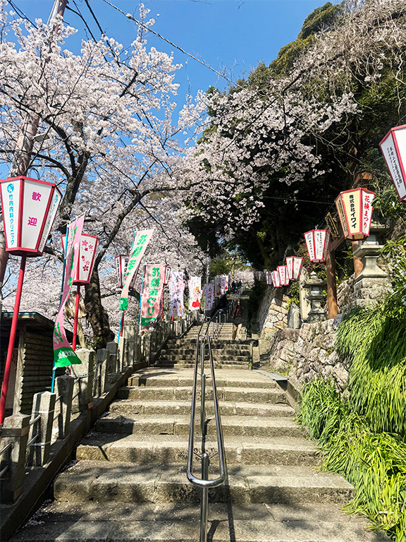 登り口の階段や境内には、弊社グループの協賛提灯も飾られており、ささやかながらお祭りに協力させていただいています。